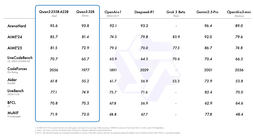 Qwen 3 models outperform many top-tier LLMs across a range of benchmarks: